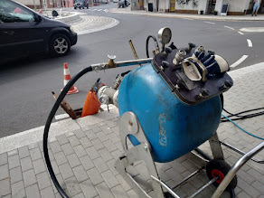 A oprava proběhla hned vzápětí. A to naštěstí metodou, která nevyžaduje žádné kopání. Prostě se do stávající prasklé trubky nafouká jakýsi rukáv, který potrubí zevnitř vyplní a funguje pak jako trubka v trubce.