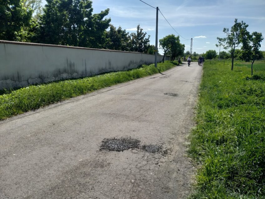 Cesta kolem zámecké zdi ve Ctěnicích byla plná děr. A už jsou opravené. Materiál na opravu jsme získali z asfaltového recyklátu z našeho kruháče.